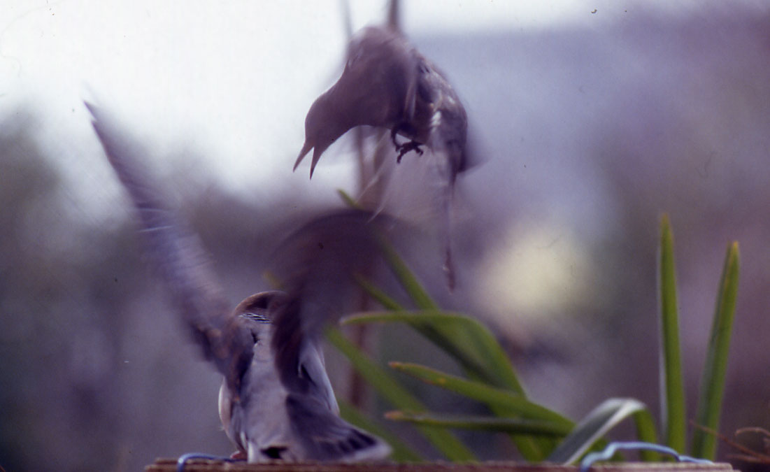 そこへ、キジバトが急降下爆撃(下の鳥)