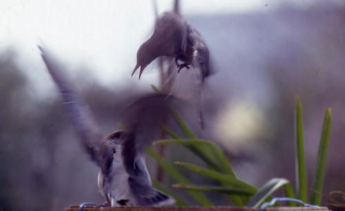 ここは東京23区内、庭の木の箱にパンをちぎっておいていたら